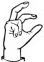На ћирилици написано ДАНИЈЕЛА БИЗУМИЋ састоји се из 15 слова [?]. Исписано ћириличном једноручном азбуком за глувонеме: